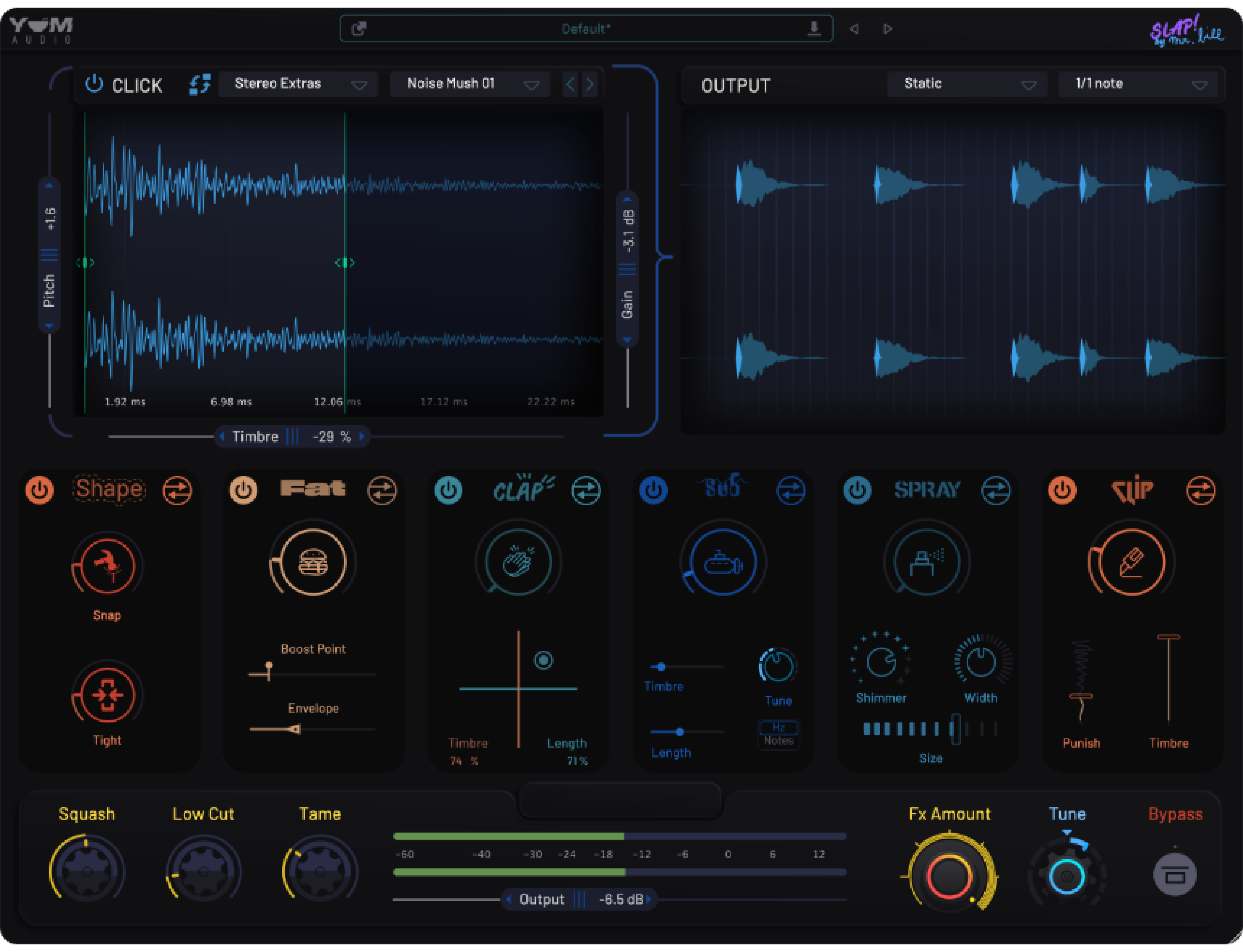 • automatic parameterization of original/processed signal mixing, stereo width and pre-delay