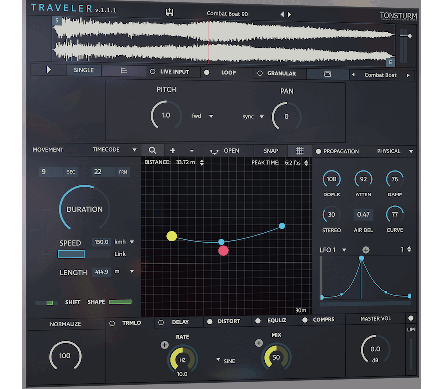 Works as a live insert effect and offers advanced functionality of Audio Suite. Drag and drop and record your own sounds. Accurate synchronization of the Doppler path in timecode, seconds or bars and beats mode.